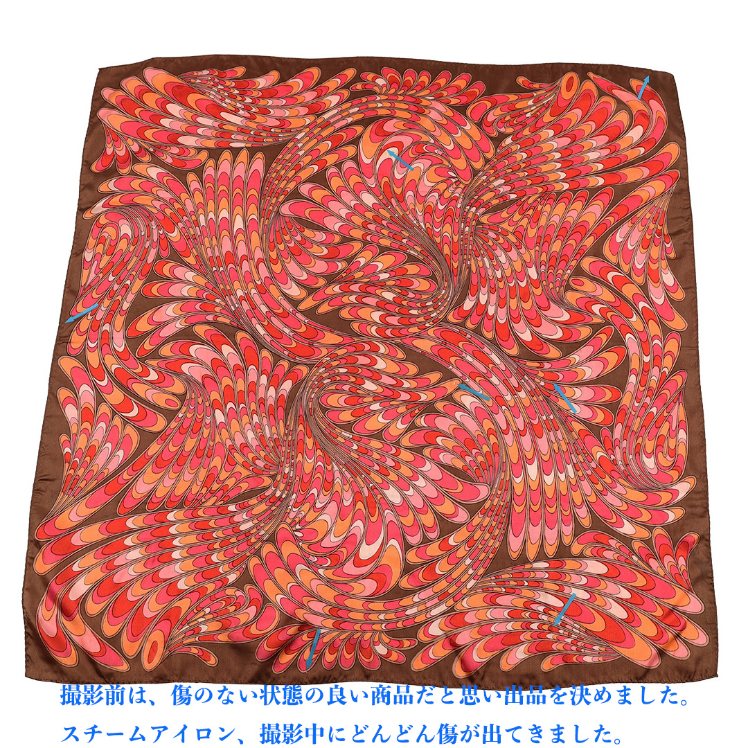 ヴィンテージ調 サイケデリックプリント スカーフ 70sレトロ オプアート 大判 リング付き(ジャンク商品)