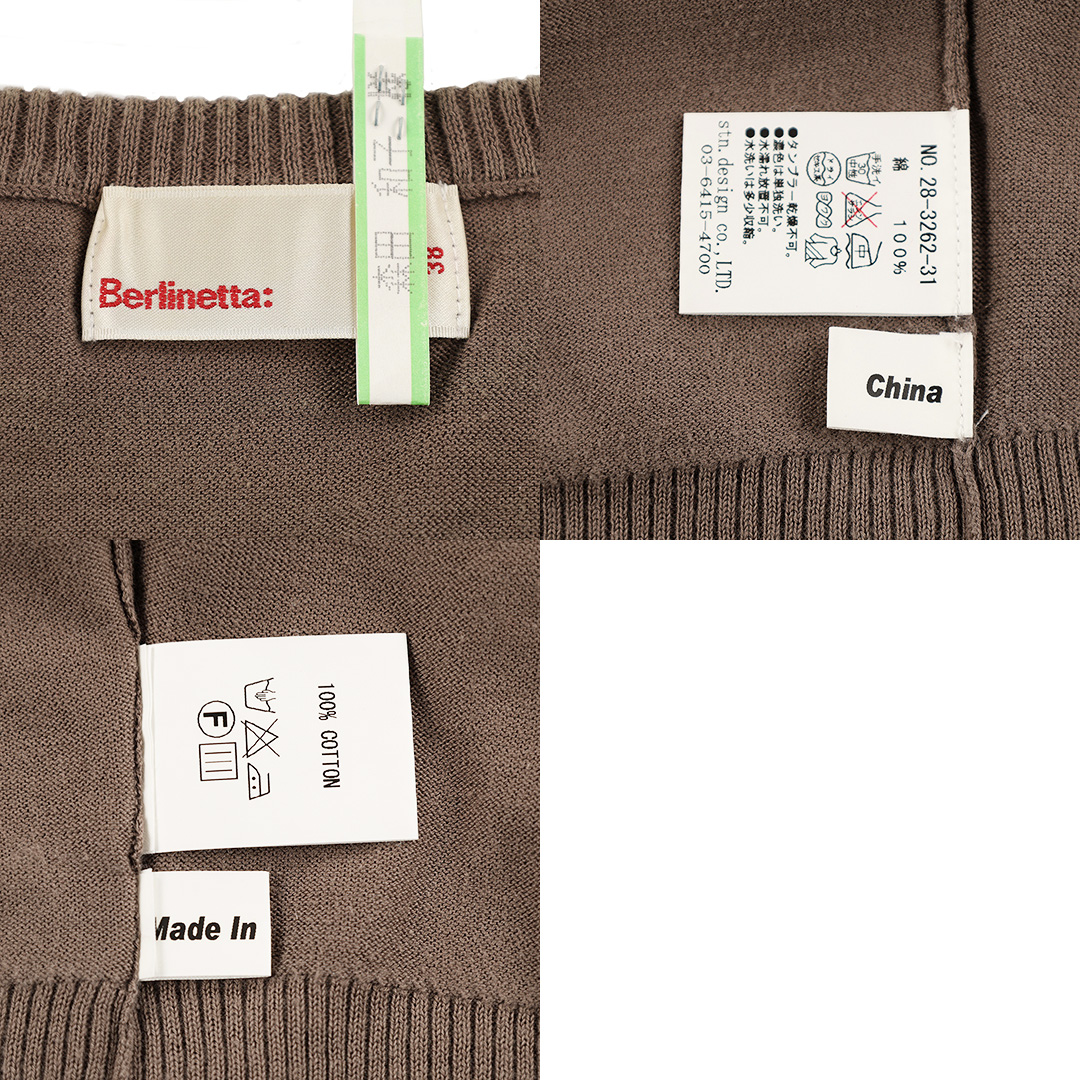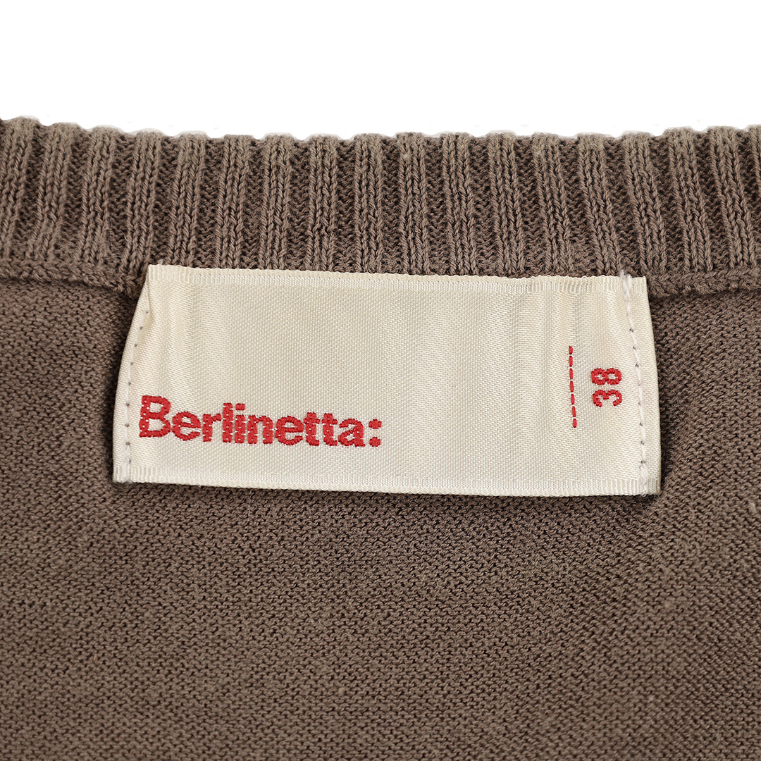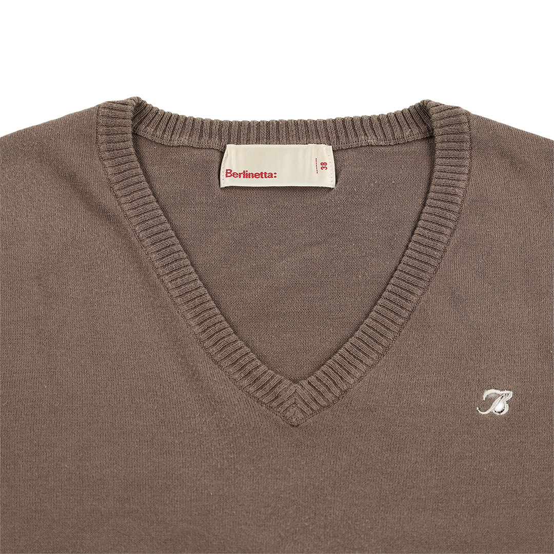 00’s Berlinetta: ベルリネッタ ワンポイントマーク付き半袖Vネックコットンニット 38(M)サイズ モカブラウン(ジャンク商品)3,300円