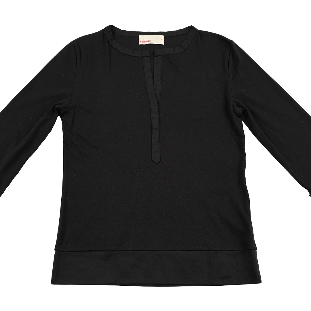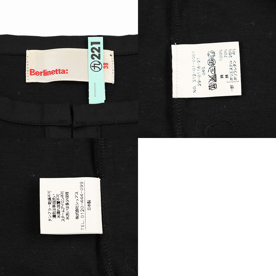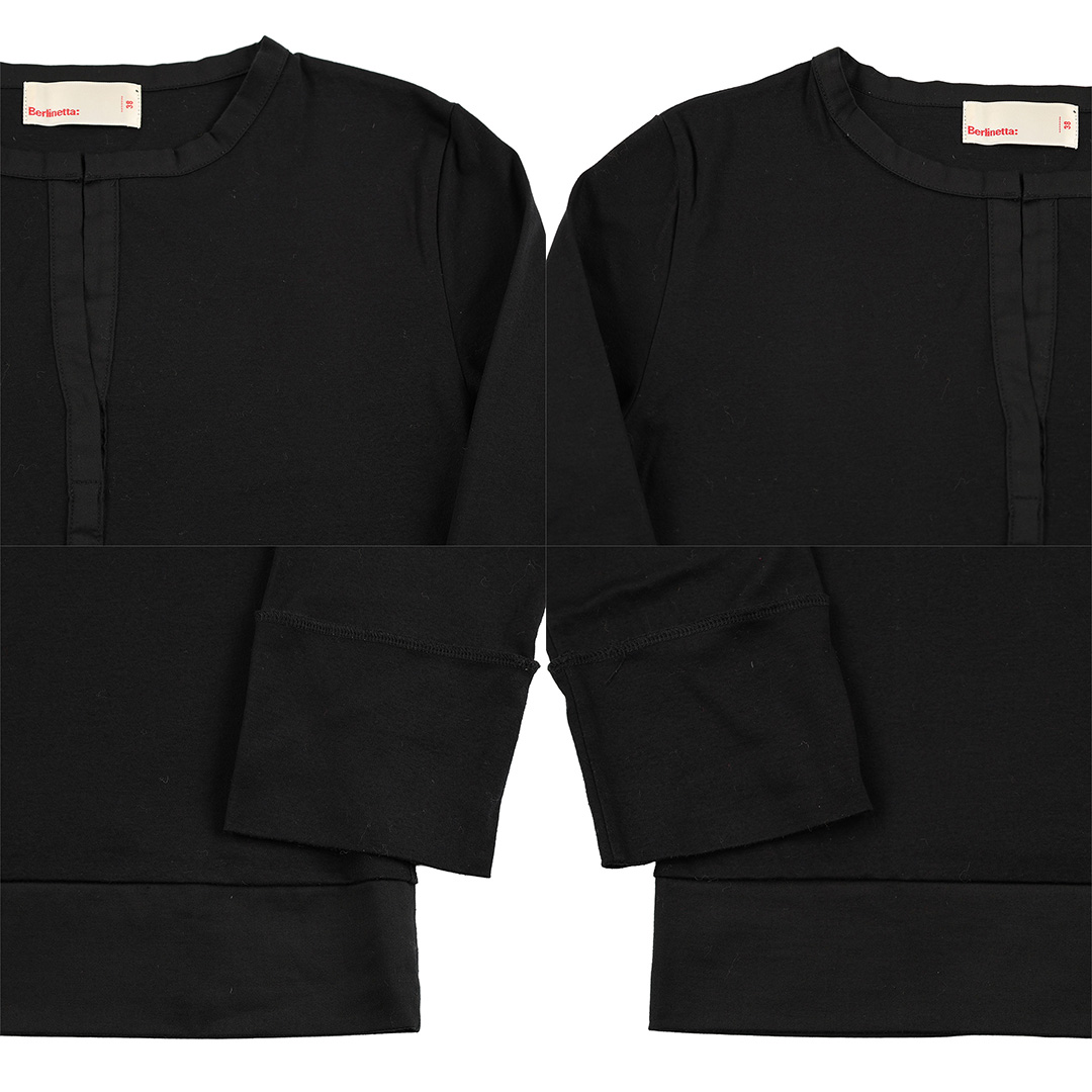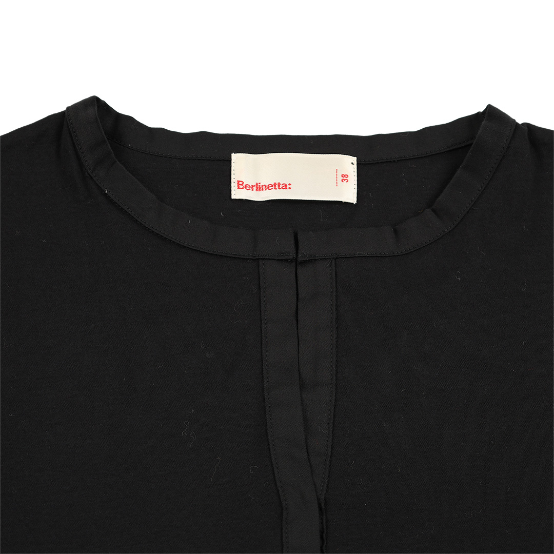 00’s Berlinetta: ベルリネッタ 別布パイピングVネックコットン8分袖カットソー 38(M)サイズ ブラック(ジャンク商品)
