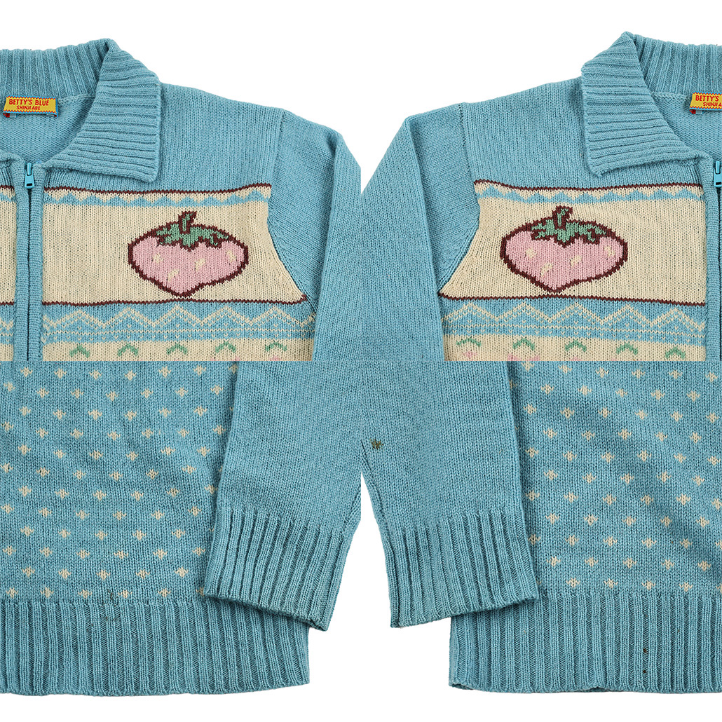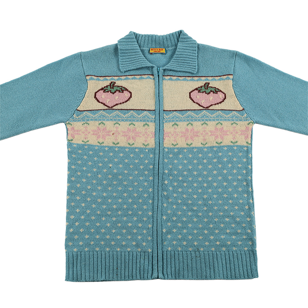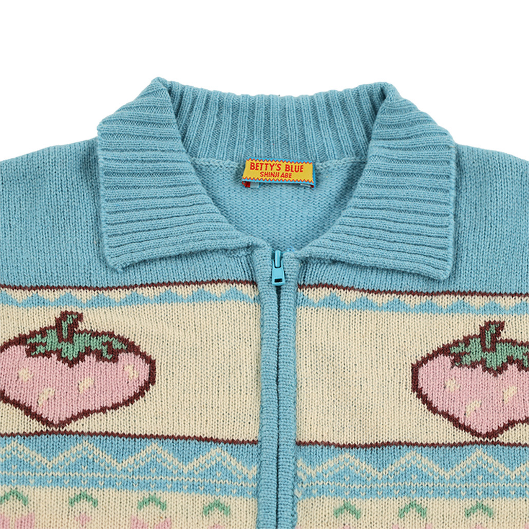 イチゴのジャガード柄が可愛いニットブルゾンです。