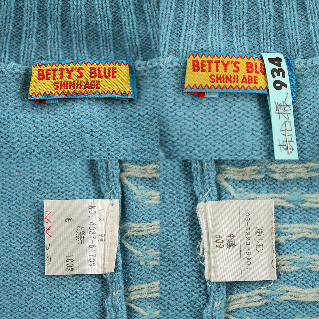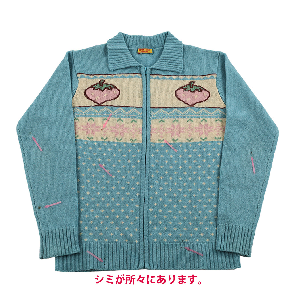 00’s BETTY’S BLUE ベティーズブルー ジャガード柄ジップニットブルゾン 9号(M)サイズ サックスブルーベース(ジャンク商品)3,300円 売切れ
