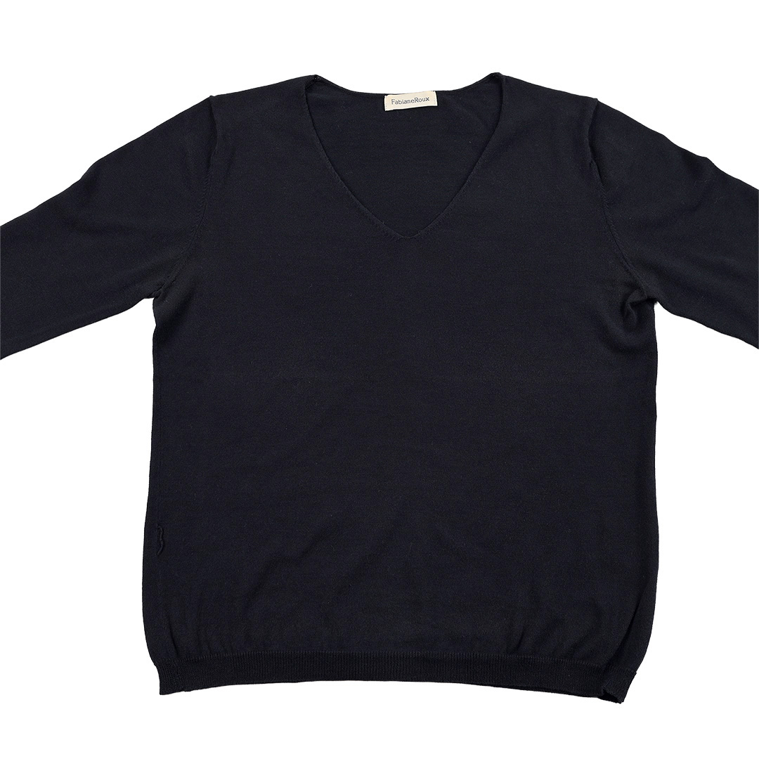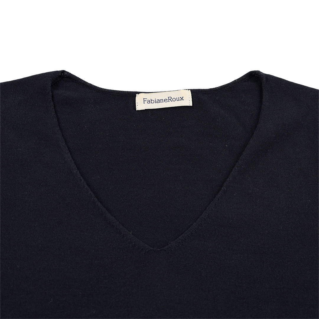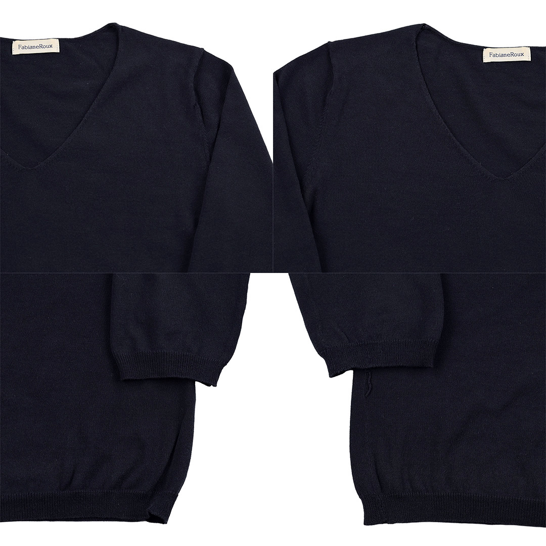 00’s FabianeRoux ファビアンルー 7分袖Vネックコットンニット フリーサイズ ネイビー(ジャンク商品)3,300円