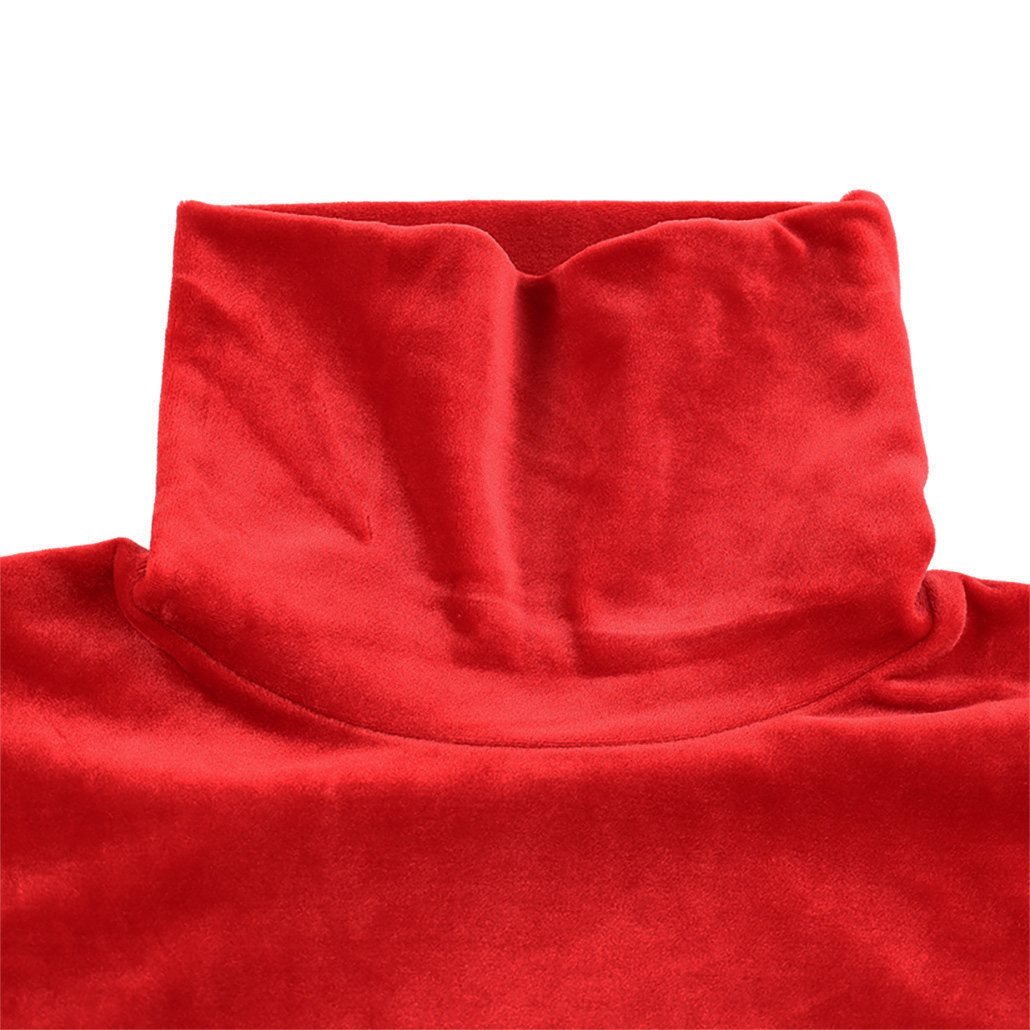 インナーに使用するとガーリーなコーディネイトに華やかさがます、別珍長袖タートルネックカットソーです。