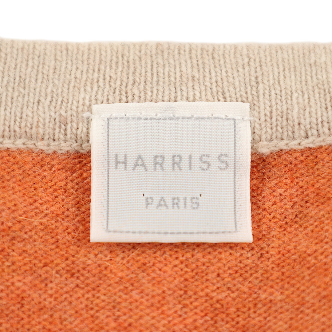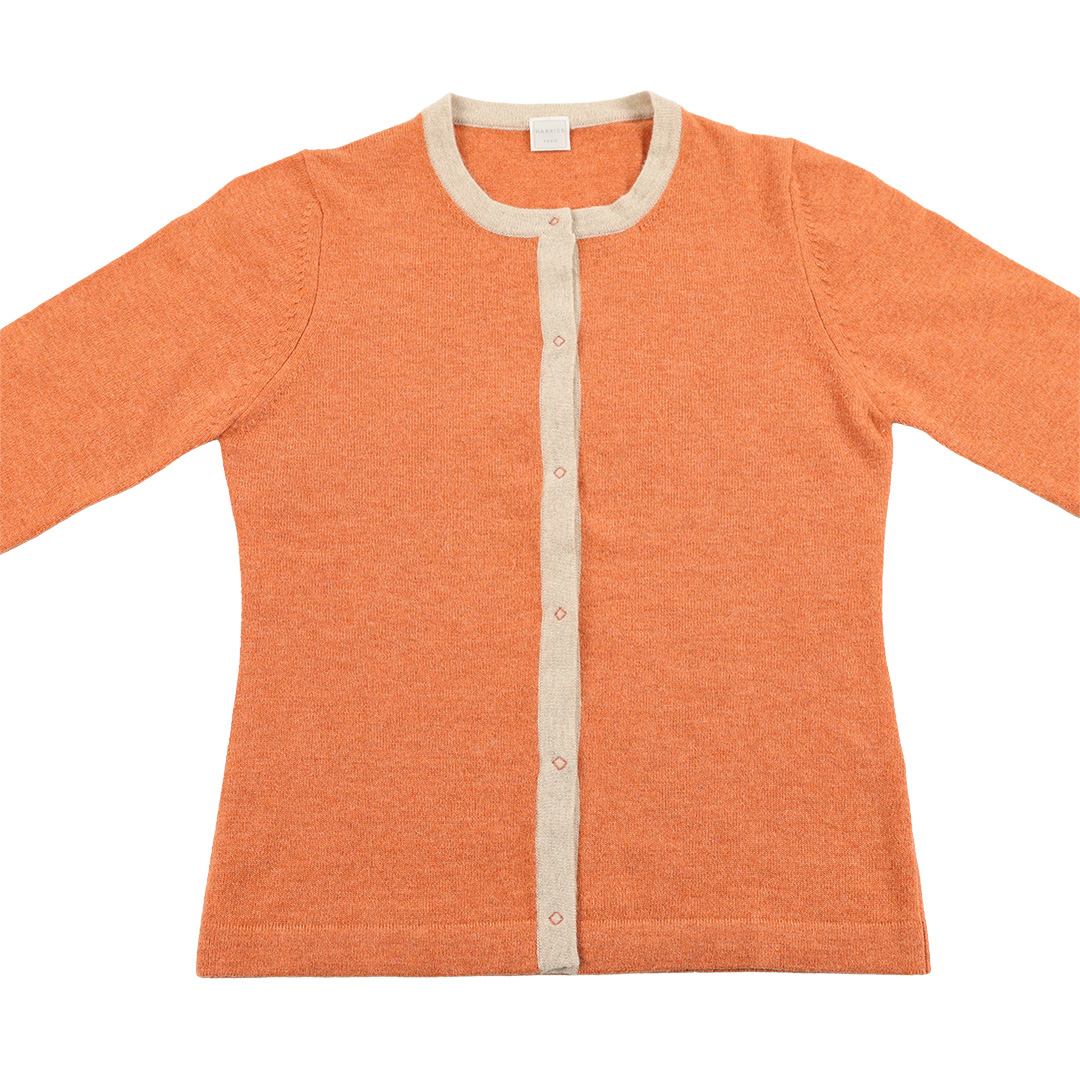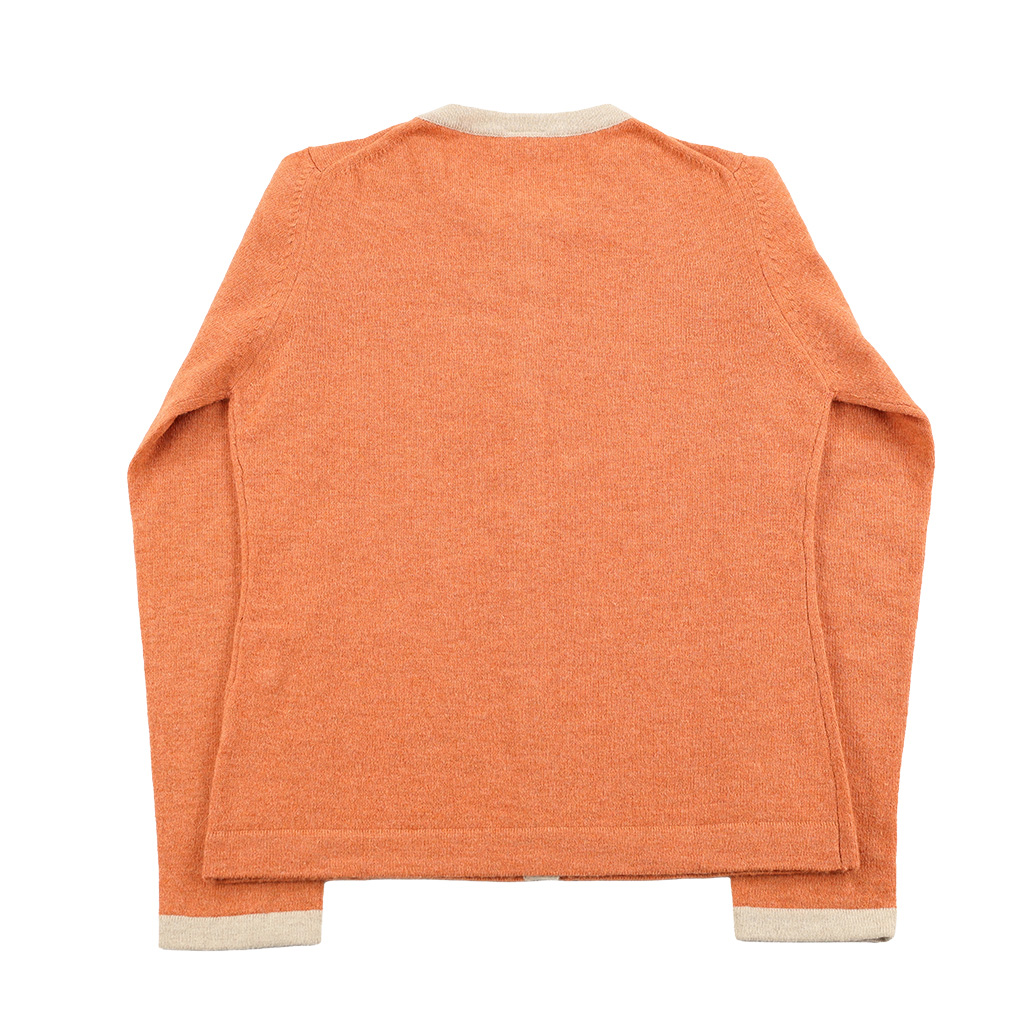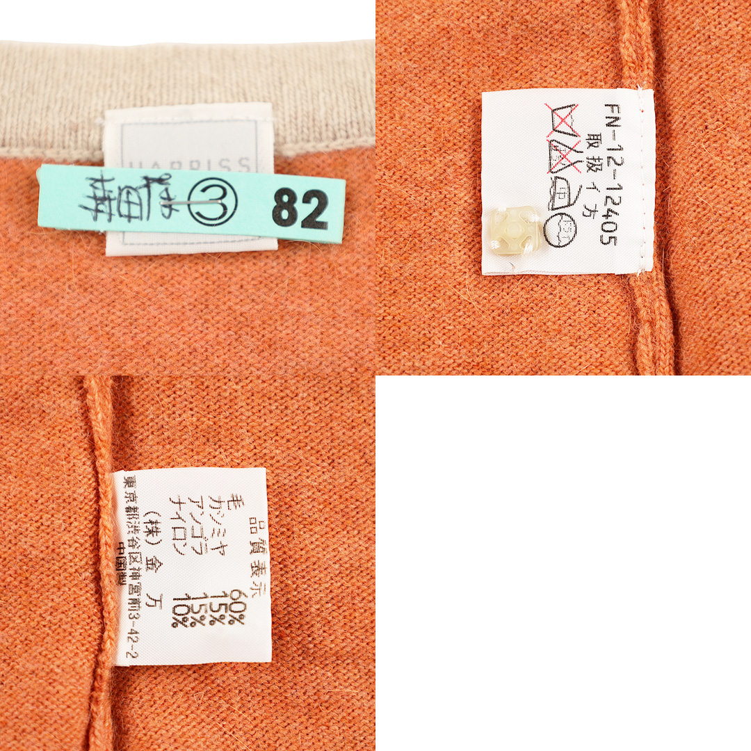 00’s Harriss ハリス カシミヤ混レディースクレリッククルーネックニットカーディガン フリーサイズ オレンジベース(ジャンク商品)3,300円