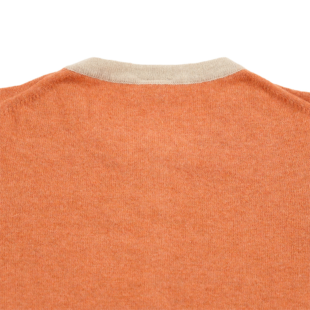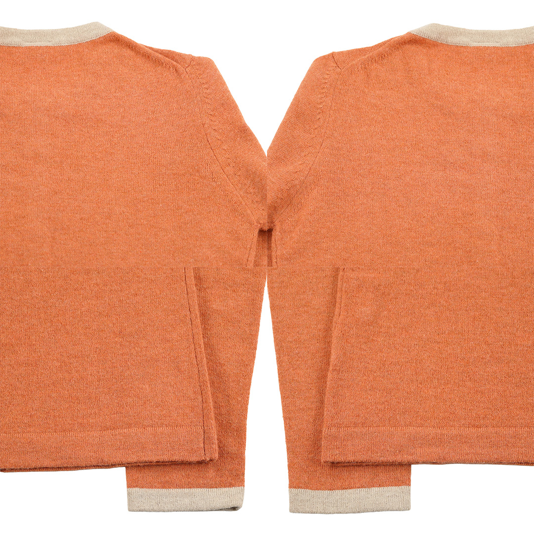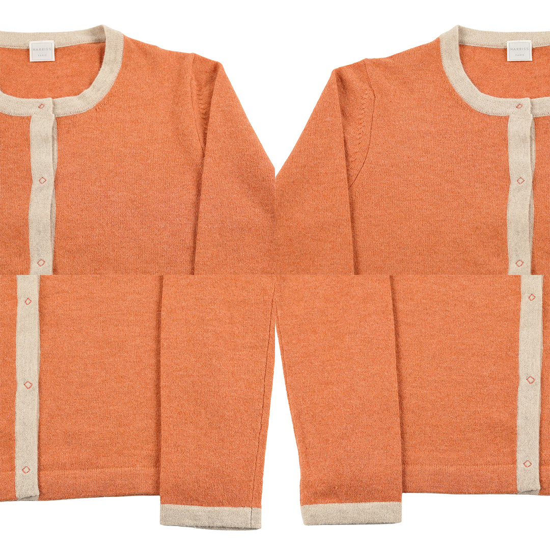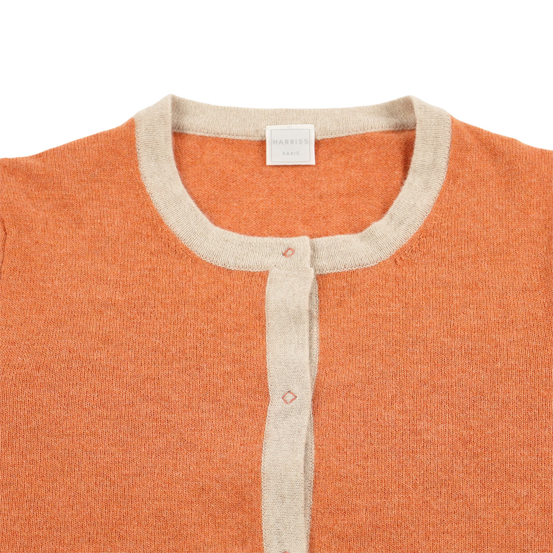 00’s Harriss ハリス カシミヤ混レディースクレリッククルーネックニットカーディガン フリーサイズ オレンジベース(ジャンク商品)3,300円