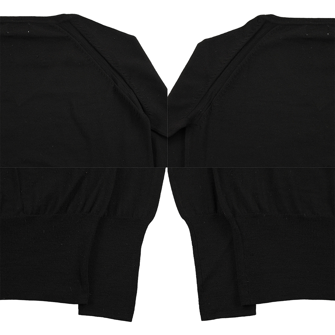 上品なVネック、ハイゲージウール素材が女性らしさを醸しだしています。