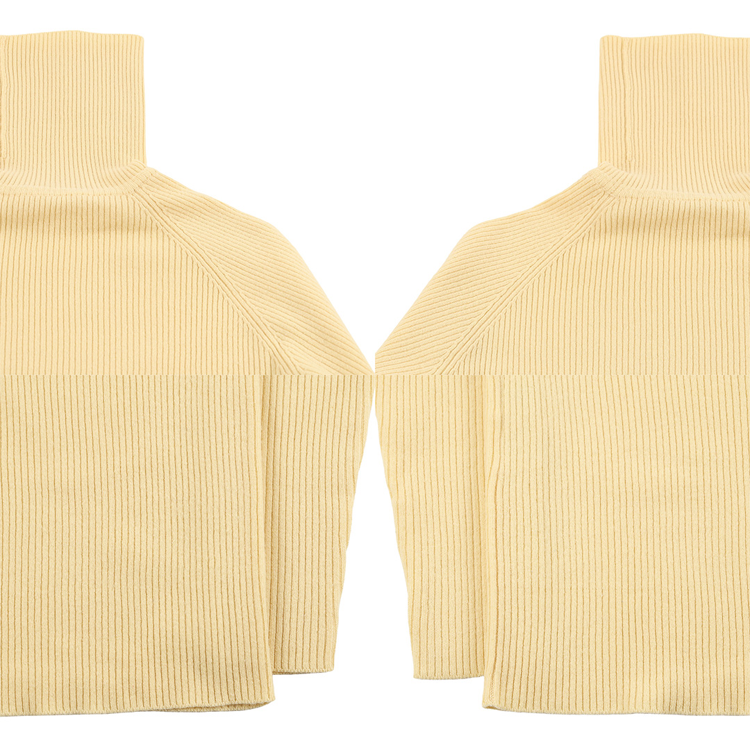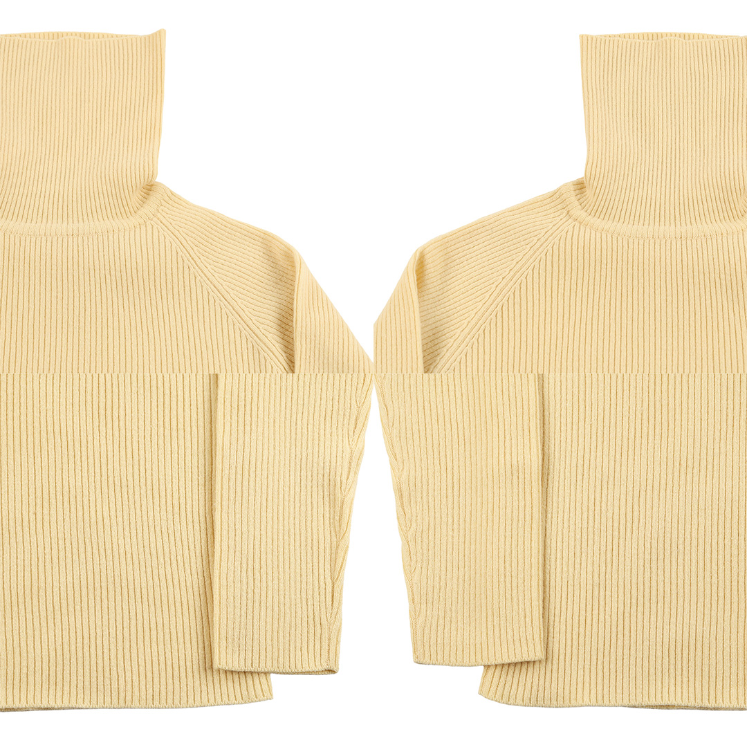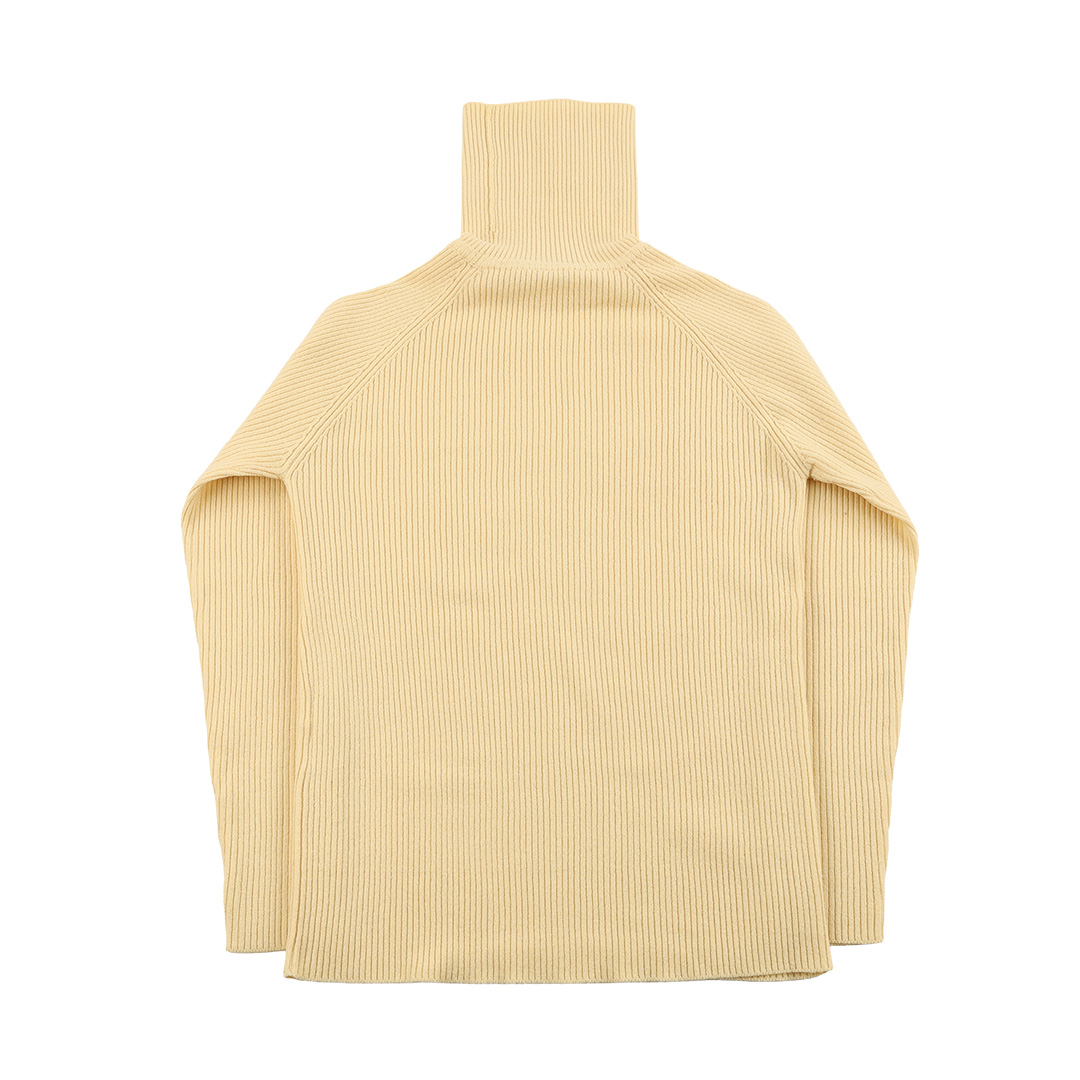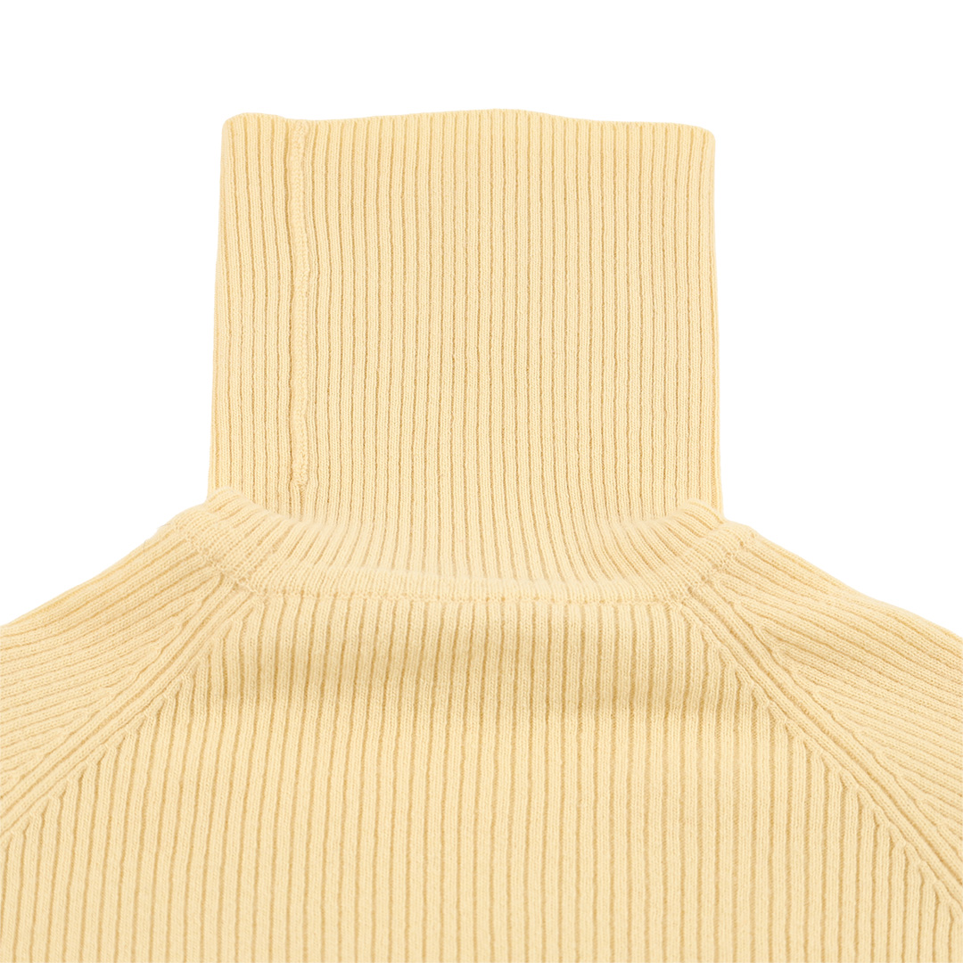 商品について:リブ編みで身体にフィットするタートルネックニットです。
