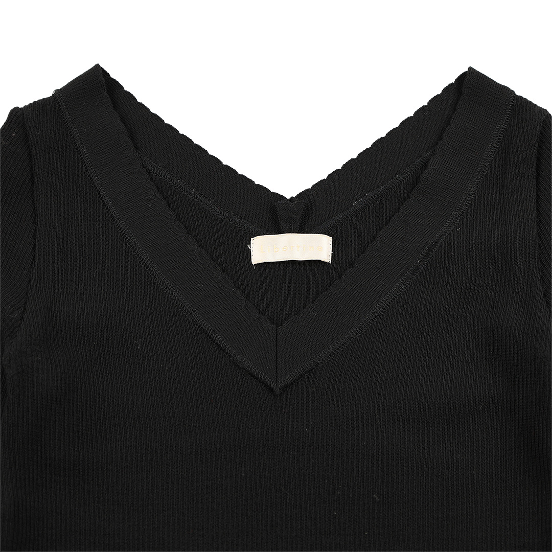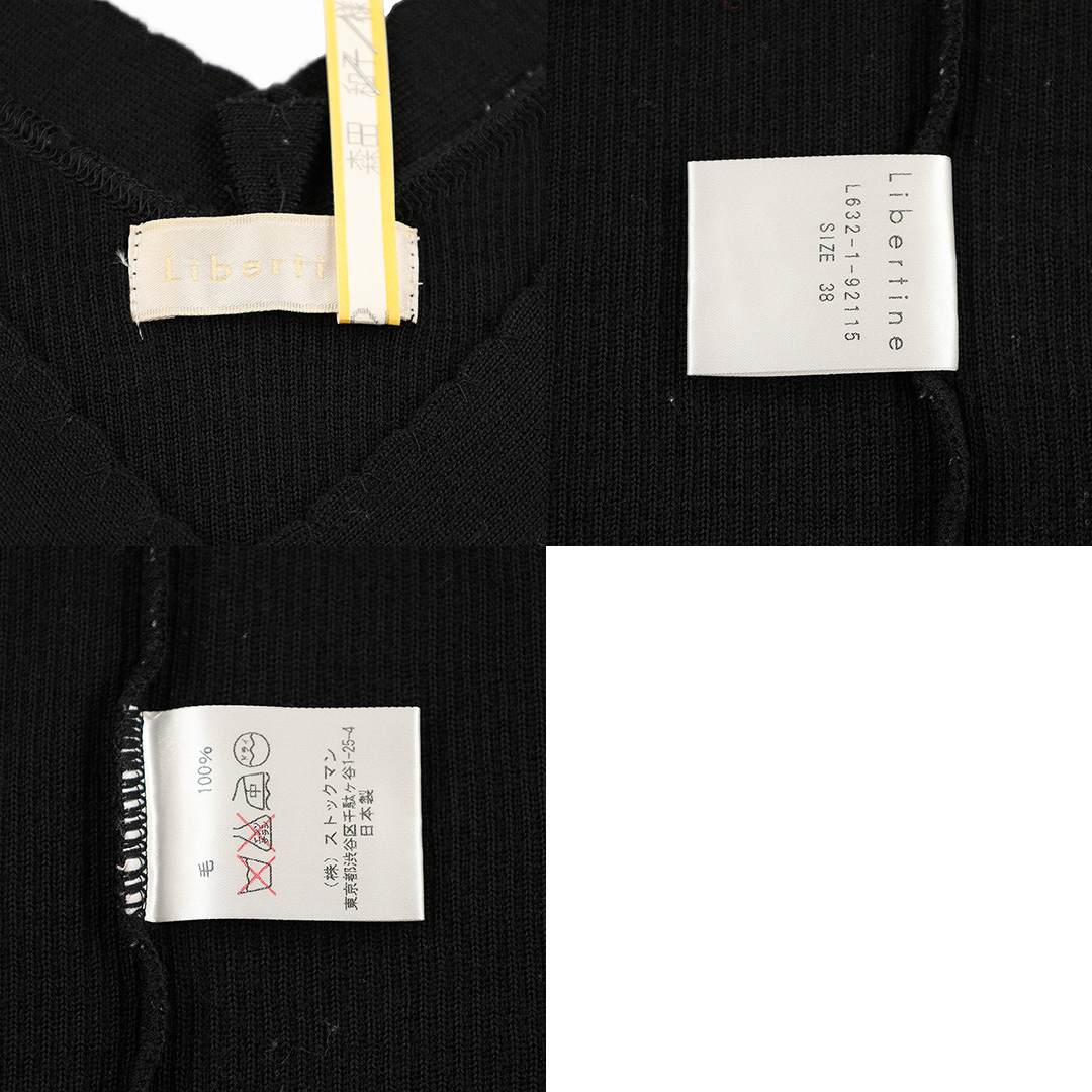 00’s Libertine リベルティンヌ 7分袖Vネックウールニットカットソー仕上げ 38(M)サイズ ブラック(ジャンク商品)3,300円