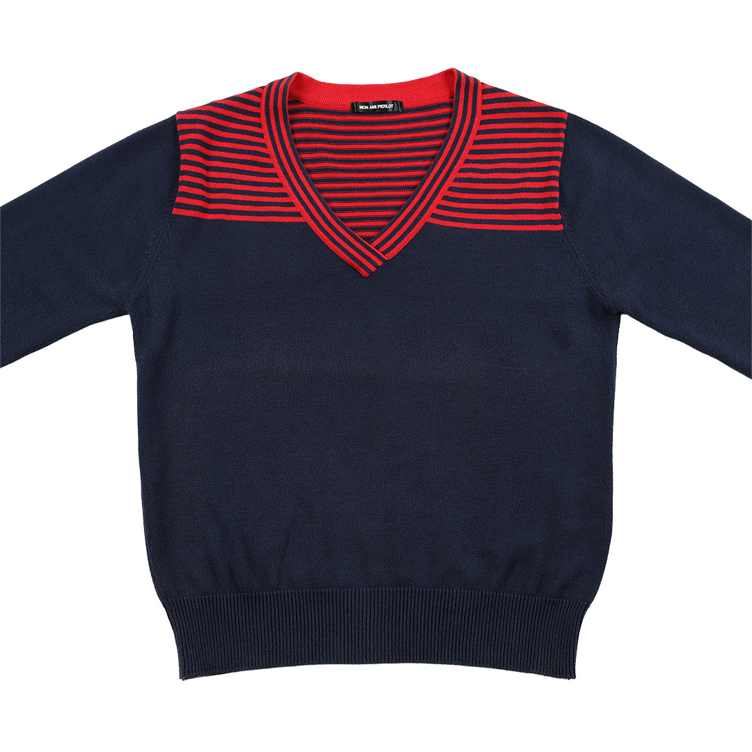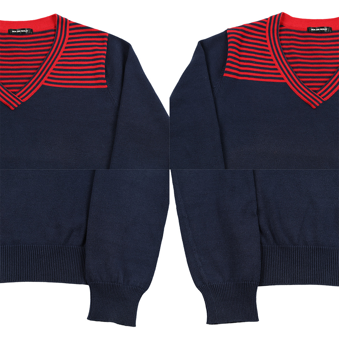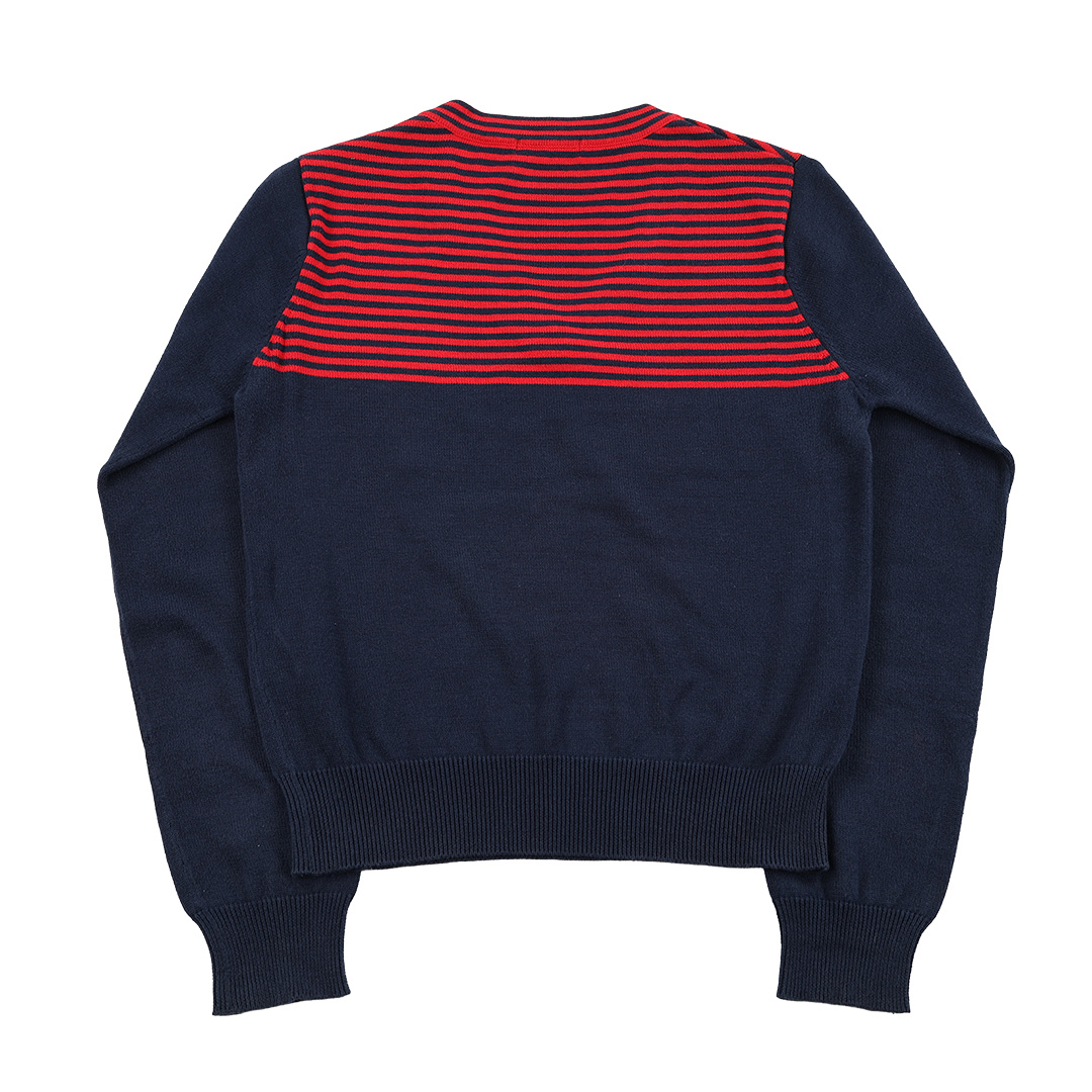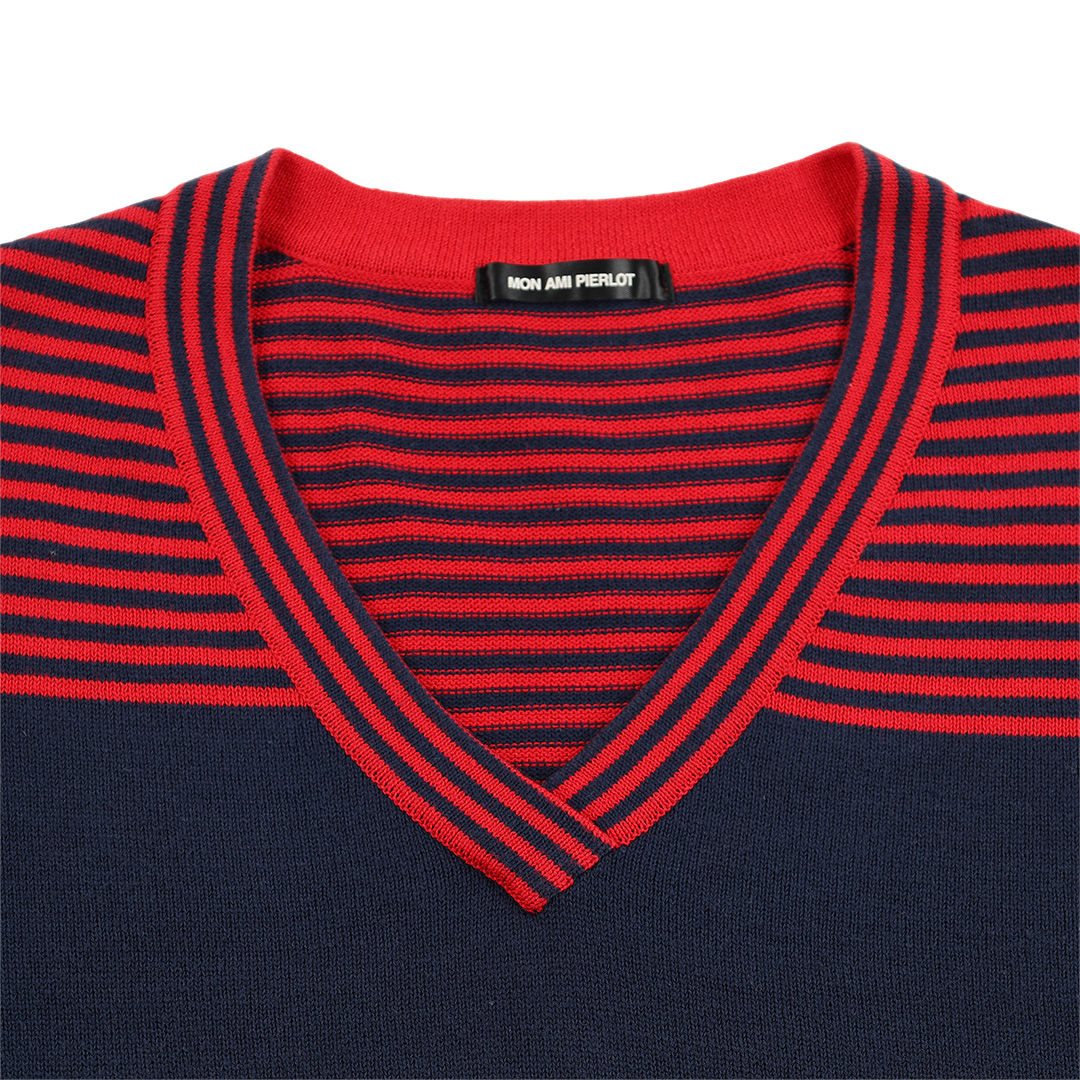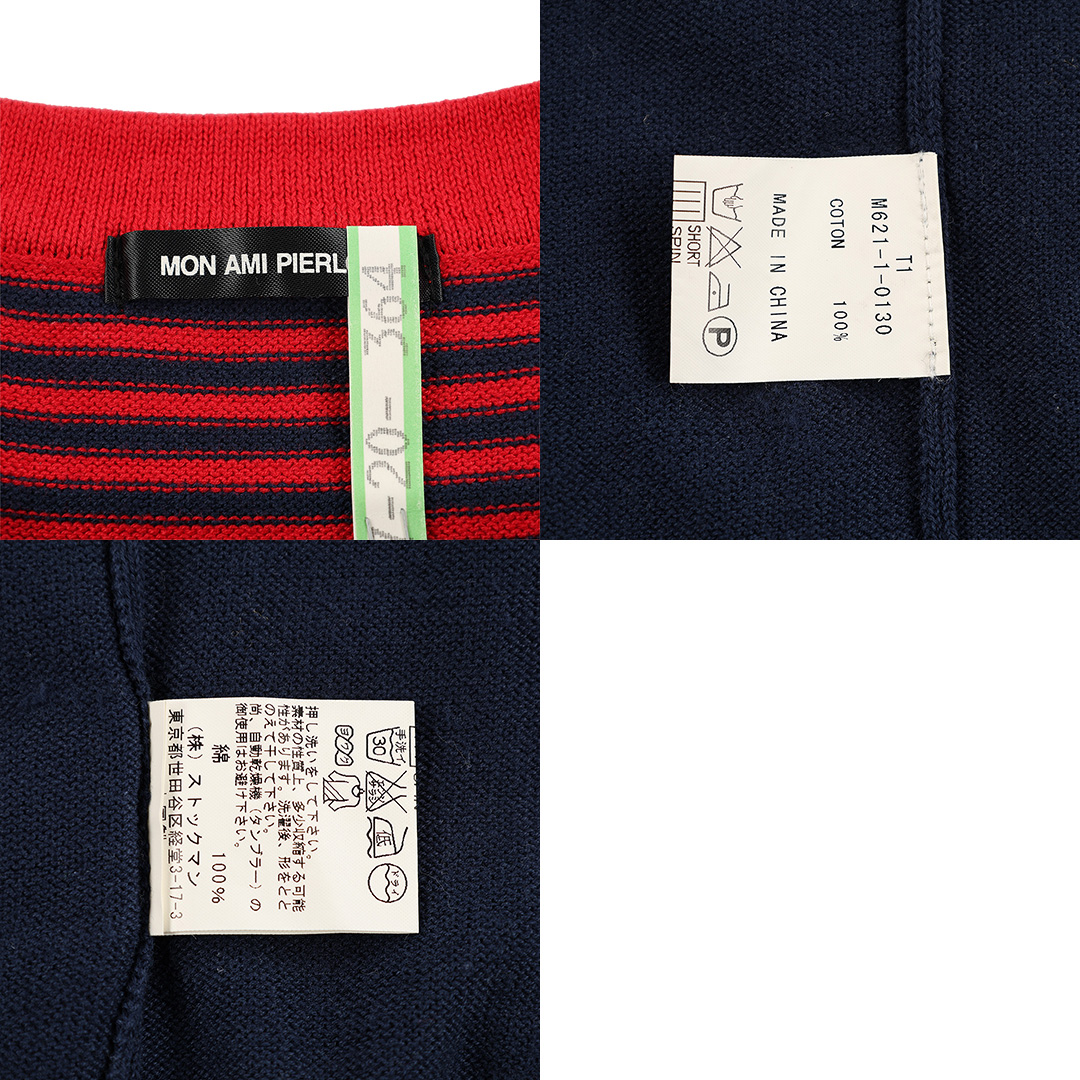 00’s MON AMI PIERLOT モナミピエルロ 胸ボーダーVネックコットンニット フリーサイズ ネイビー / レッド(ジャンク商品)3,300円