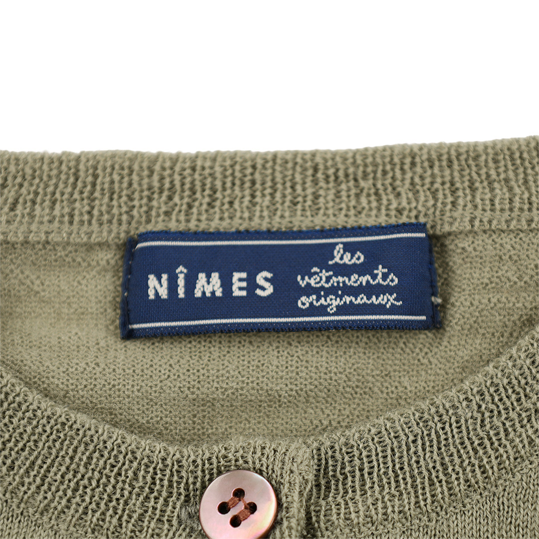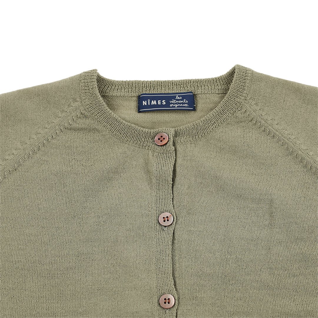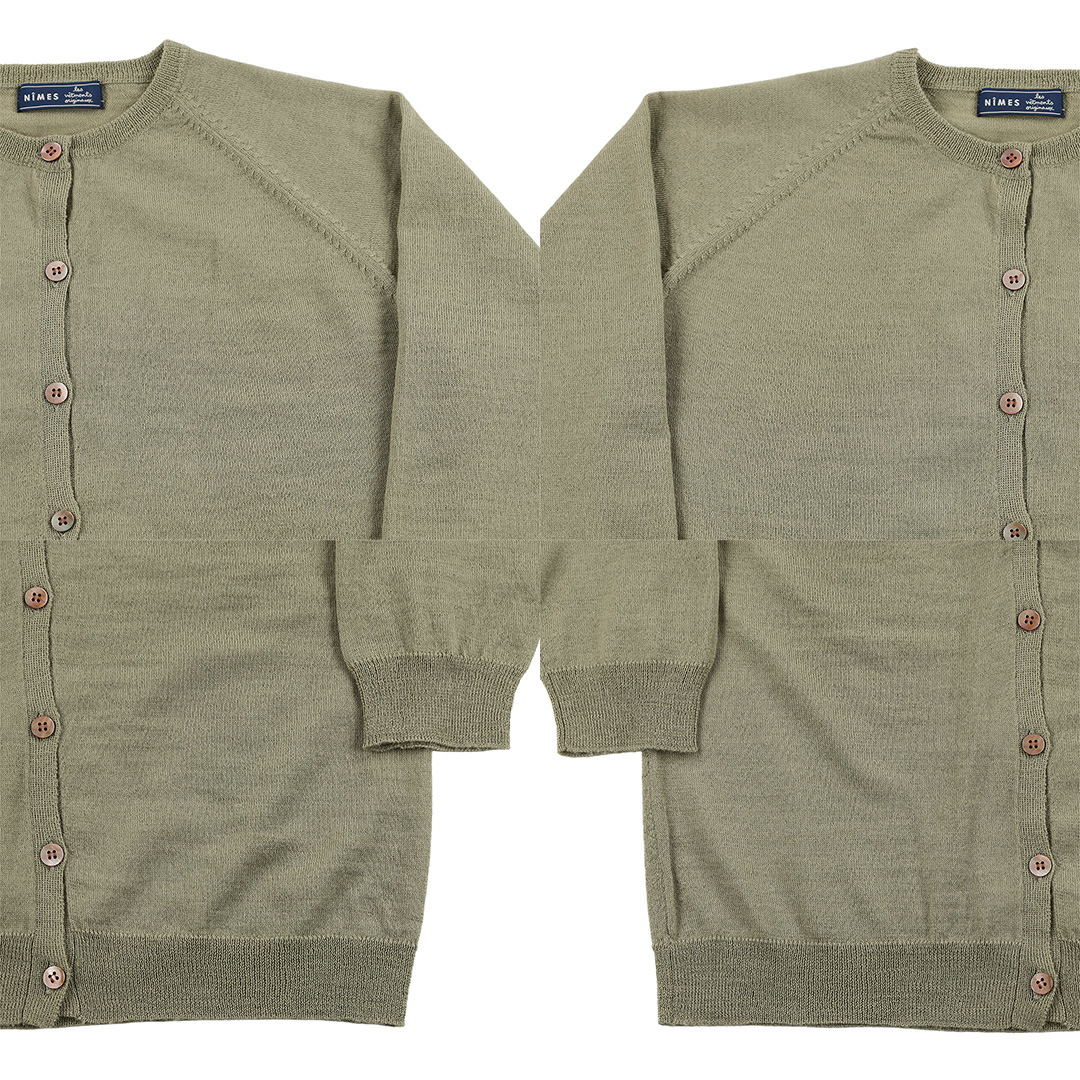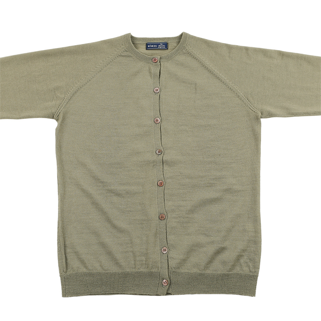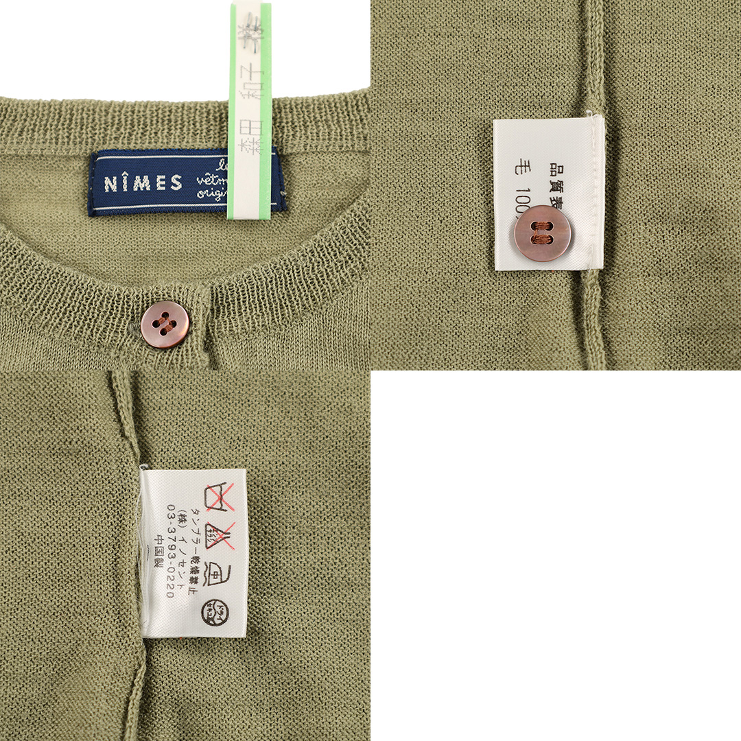 00’s NIMES ニーム 7分袖ウールクルーネックカーディガンニット フリーサイズ ライトグレイシュグリーン(ジャンク商品)3,300円