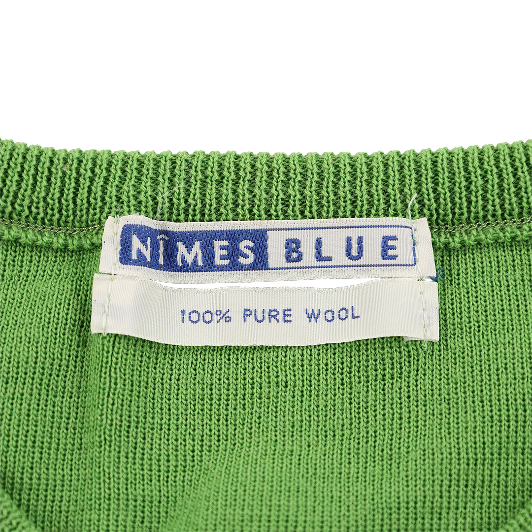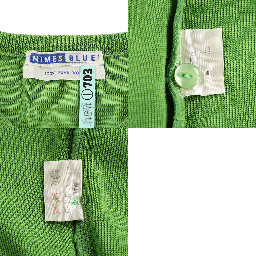 00’s NIMES BLUE ニームブルー ウールクルーネックカーディガン フリーサイズ イエローグリーン(ジャンク商品)3,300円