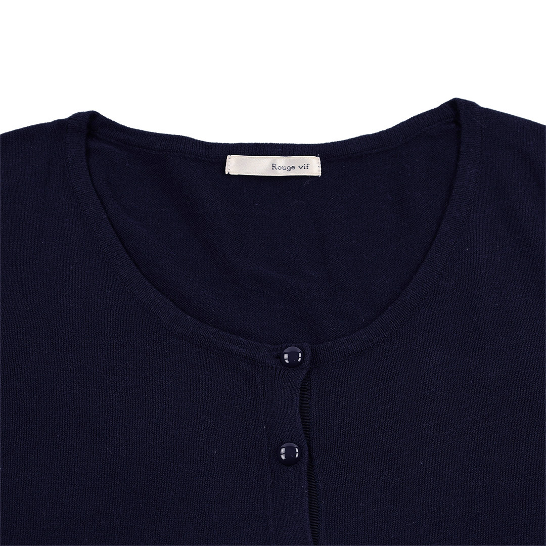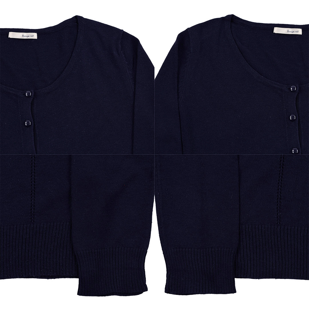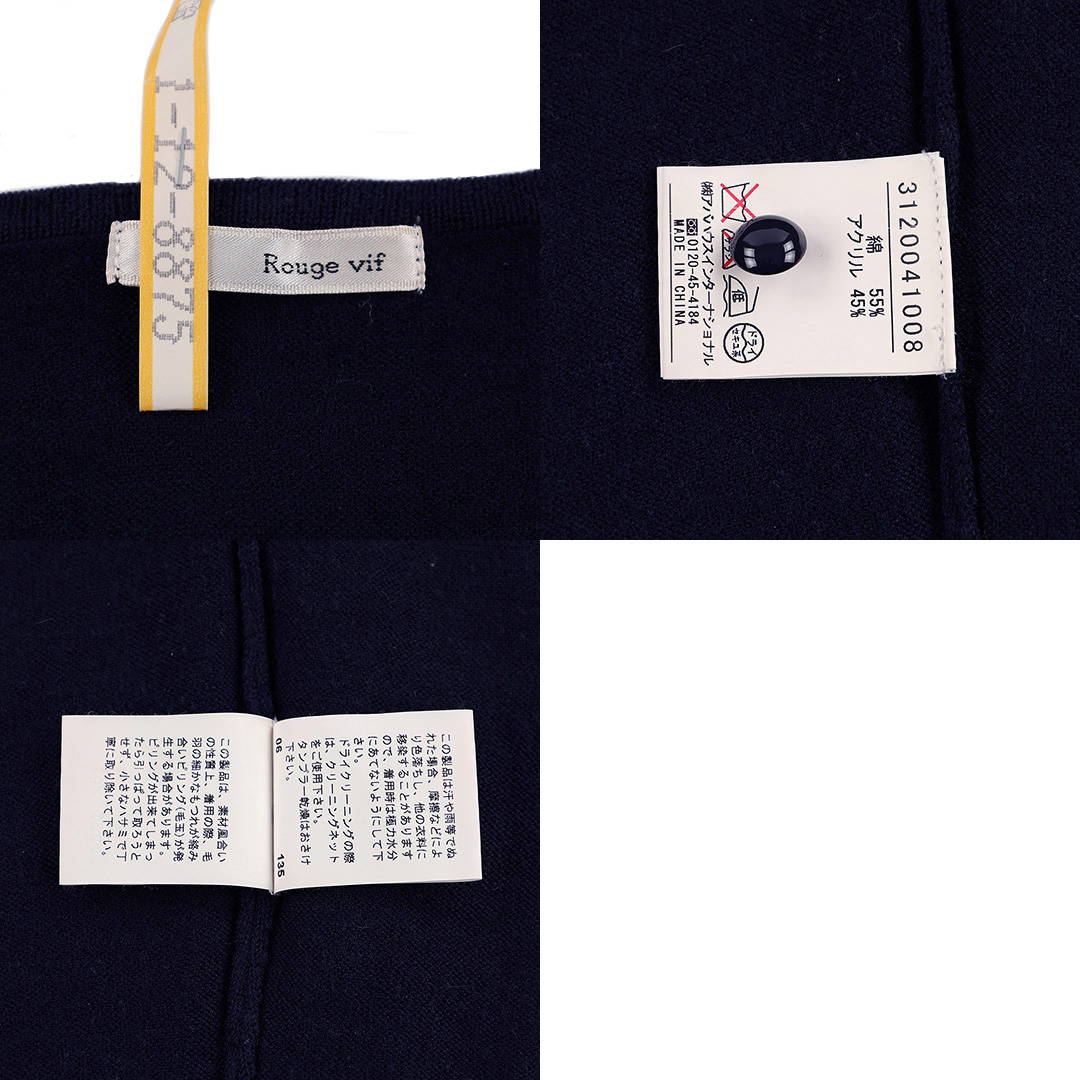 00’s Rouge vif ルージュヴィフ レディースハイゲージクルーネックコットンニットカーディガン フリーサイズ ネイビー(ジャンク商品)3,300円