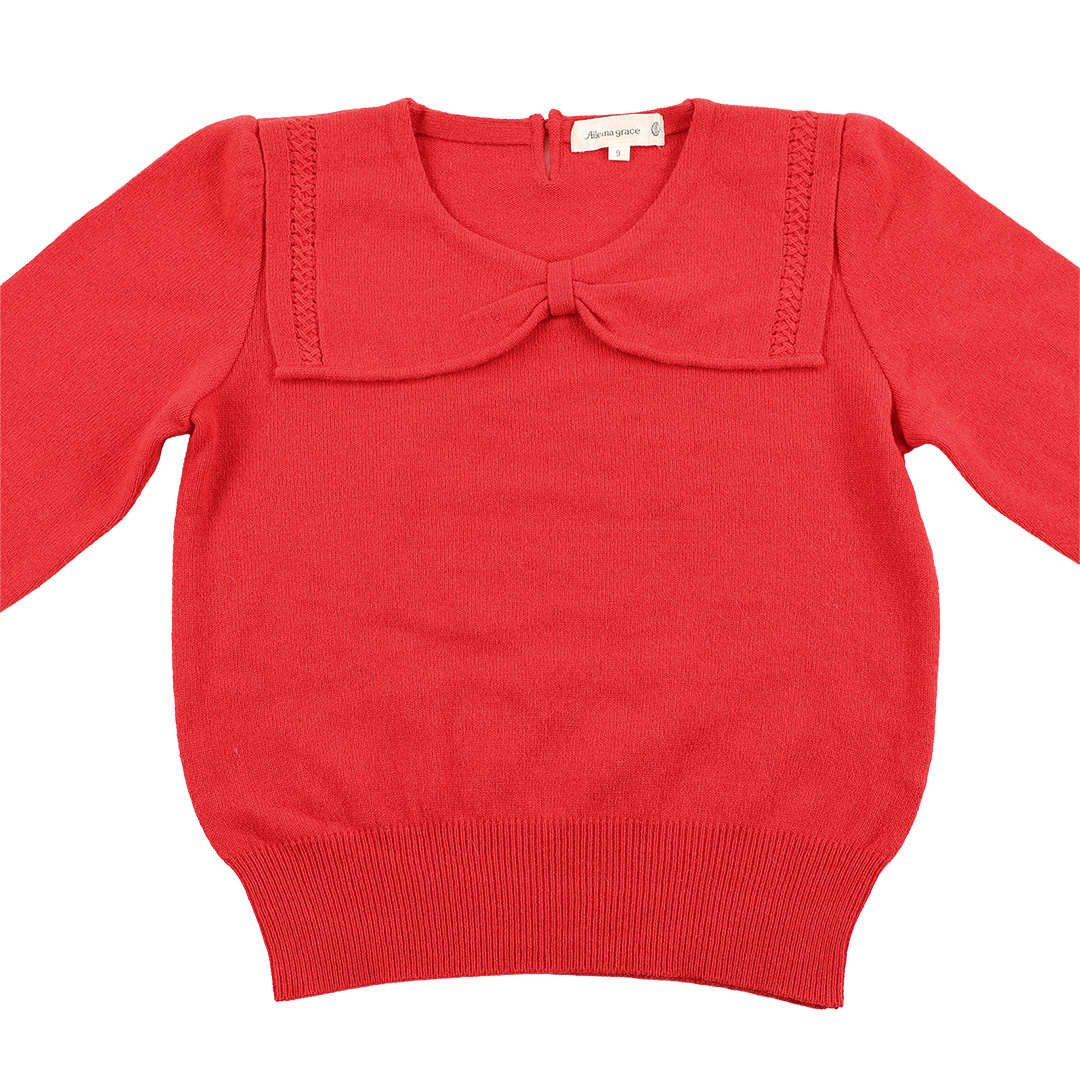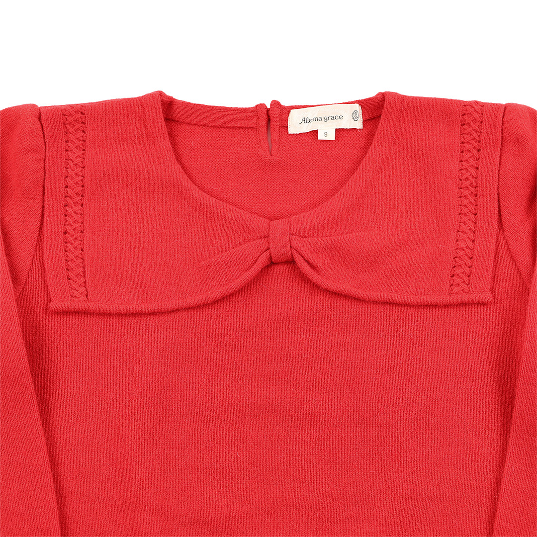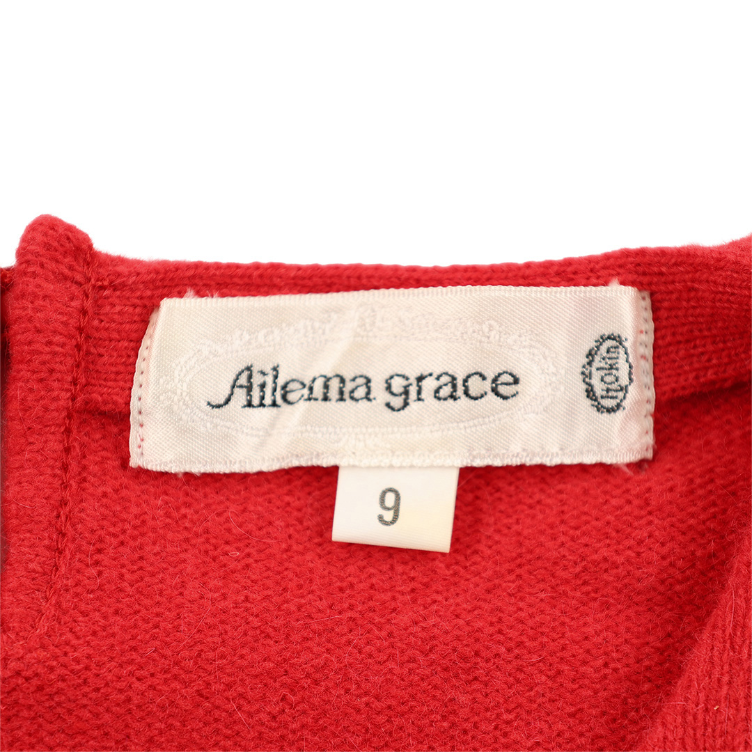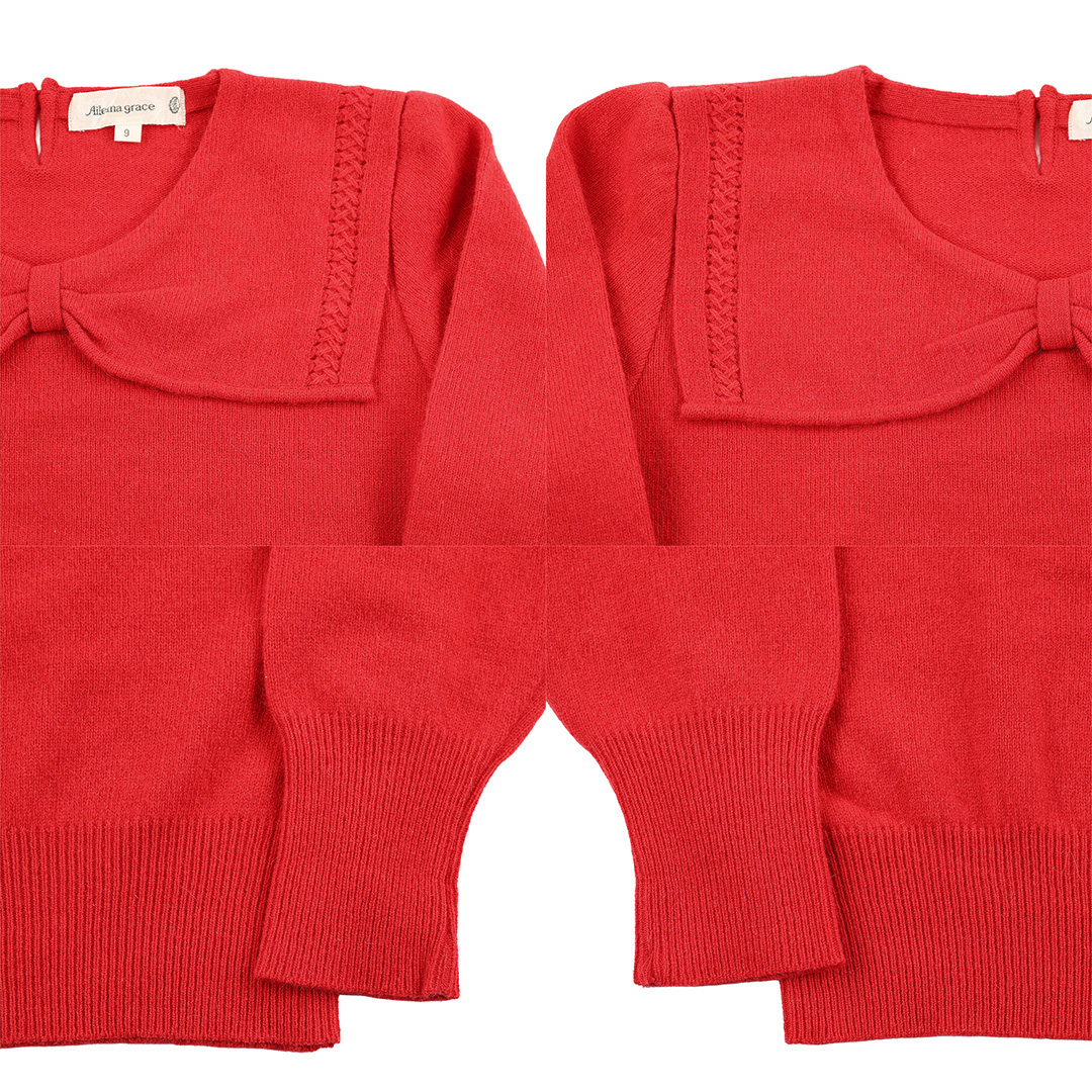 90’s Ailema grace アイレマグレース 肩パット付きリボンデザインUネックニット 9号(M)サイズ レッド(ジャンク商品)3,300円