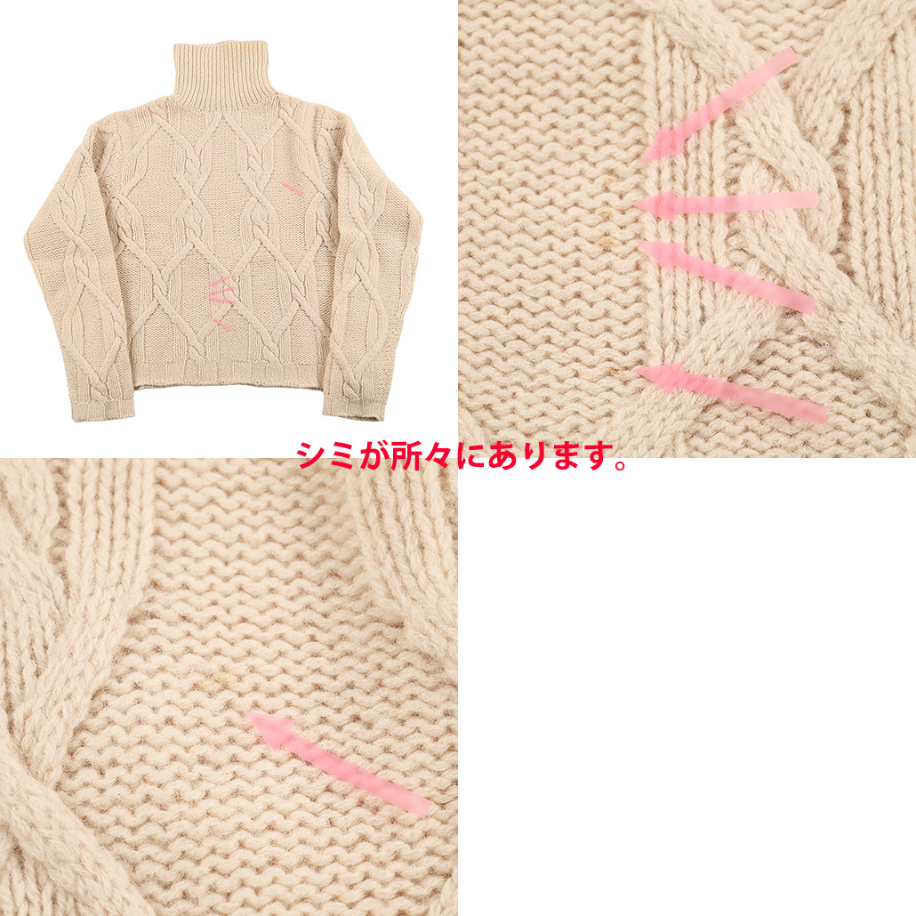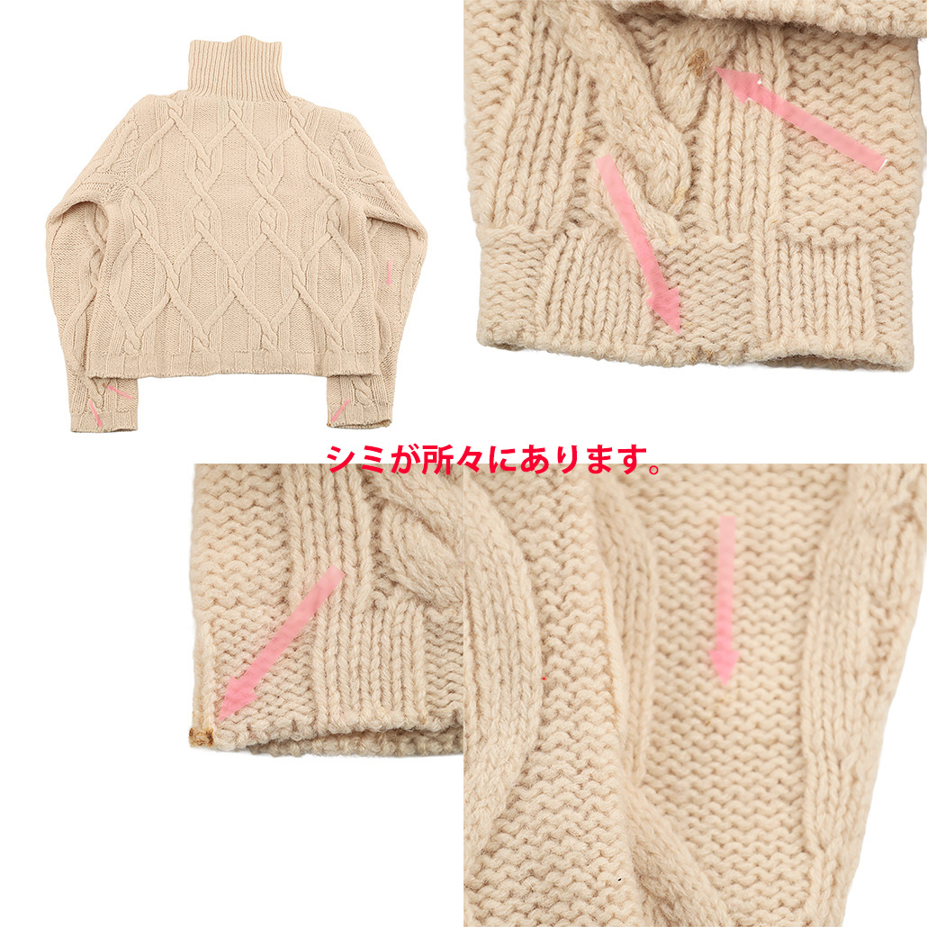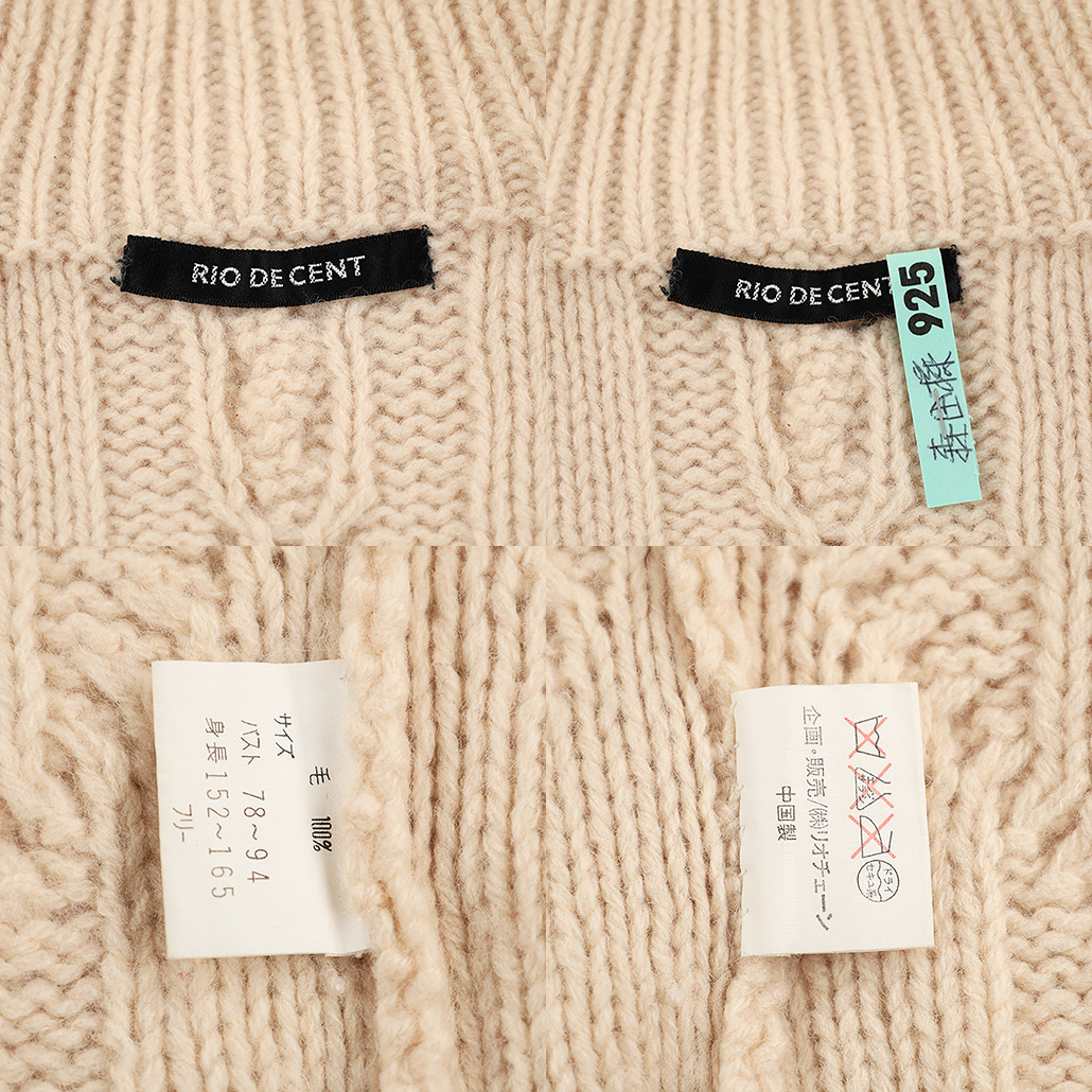 90’s RIO DE CENTE リオデセント 編み込み柄ショート丈タートルネックニット フリーサイズ オフホワイト(ジャンク商品)シミが所々にあります。3,300円