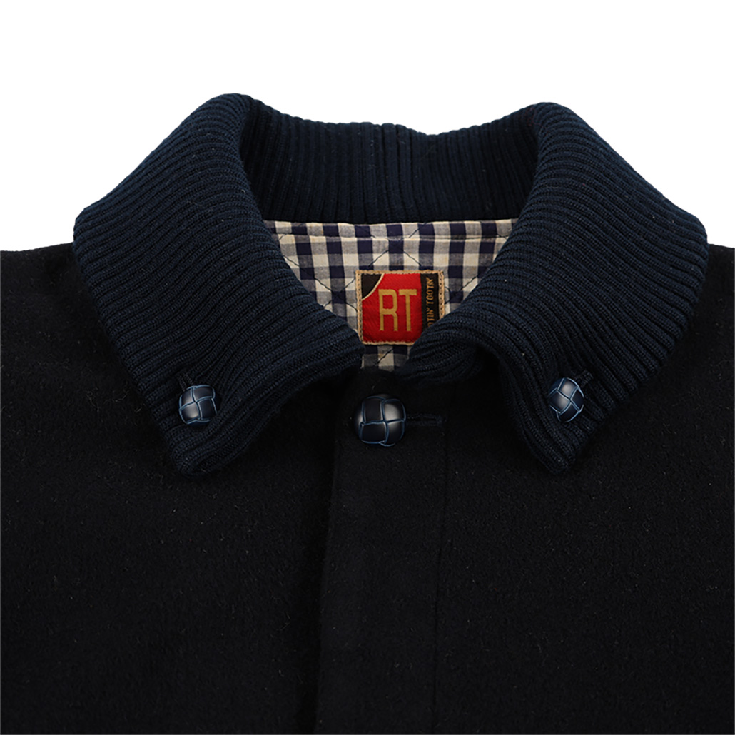 スパニッシュ・カラーと呼ばれるニットのリブ網の大きな衿と裏地のギンガムチェックが可愛いハーフコートです。